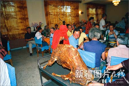 “烤全羊”是最具特色的美食,在招待贵宾的宴会上,是必上的大菜。
