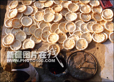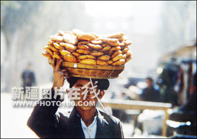 “馕”是维吾尔等民族日常生活的主食。以面粉发酵后在馕坑里烘烤而成,可以存放的时间很长,种类很多,大小不一。最大的馕直径有50厘米,周边厚,中间薄,戳有花纹,放少量盐和洋葱。最小的馕只有普通口杯大,最厚的馕有6厘米左右。此外还有肉馕、油馕、甜馕,又脆又香。