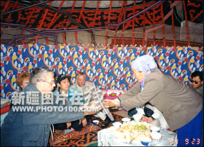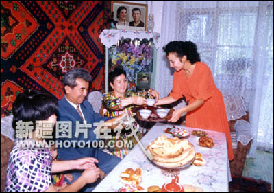 茶在新疆各族人民生活中的地位很重要,有“宁可三日无肉,不可一日无茶”之说,它不仅可以消化肉食,更可补充吃蔬菜少而缺少的维生素。牧民还喜欢饮用压制成砖块状的“茯茶”,色泽红褐,味道香醇,加上鲜奶、奶皮或酥油的“奶茶”,更是常见的饮品。