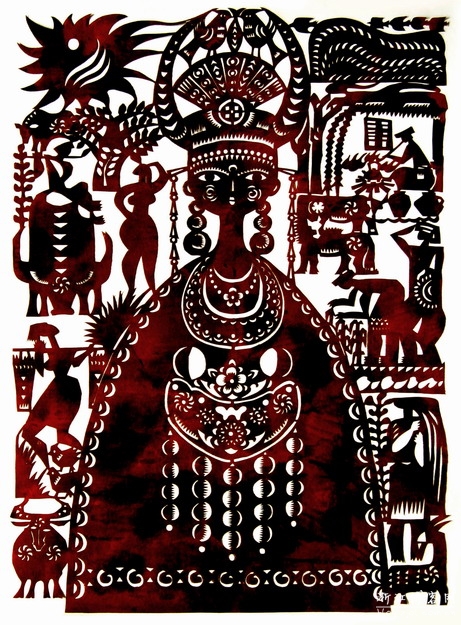 吴素莲大师的剪纸题材丰富,形式多样,在继承传统的基础上,在运用材料、新工艺的领域中,采用了染、剪、撕、刻贴等工艺手法,赋予剪纸崭新的面貌和现代装饰审美情趣。