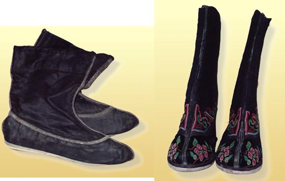 足服:古代鞋袜为足服,鞋袜和绑腿是少数民族服饰中不可缺少的部分。 |
