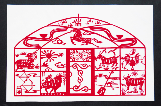 剪纸是中国最普及的民间传统装饰艺术之一,全国各地都能见到剪纸,形成了不同的地方风格流派。包头民间剪纸是北方草原游牧文化与中原农耕文化互相影响交融的产物,具有复杂的历史背景和深厚的文化内涵。包头剪纸经过长年累月的反复实践,积累了丰富的创作经验,已形成一套比较完整的表现方法。作品给人纯真、质朴、清新的美感,显得犷达而浪漫,构思上独出心裁,带有极大的独创性。风格单纯质朴,古拙而健美,富有浓郁的草原气息。