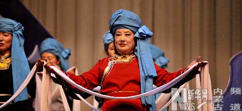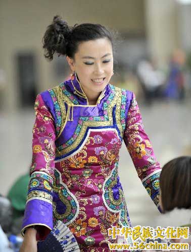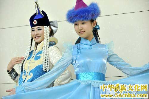这是在草原文化节上展示的传统和现代结合的土默特蒙古族少女服饰(7月15日摄)。土默特蒙古族群众的服饰受到清代宫廷服饰的影响,形成了整洁雅致的特色,但从整个服饰的款式风格来看,依然保持着蒙古民族服饰固有的特点。土默特蒙古族服装的颜色以蓝、粉、紫为主;不论男女忌穿黑色衣服;男子在春秋或夏季头戴瓜皮帽;妇女在春秋或夏季均穿长袍,不系腰带;已婚妇女在礼节性场合外加对襟长坎肩。新华社记者李欣摄