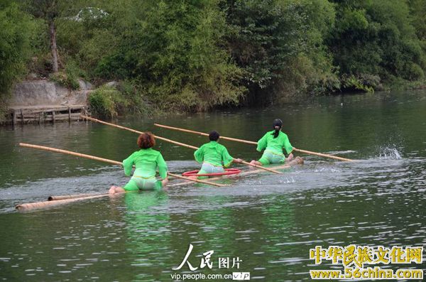 2013年8月23日,贵州湄潭县的独竹漂高手们在湄江河中表演精彩的民间绝技。据了解,这位高手今年已是70高龄。