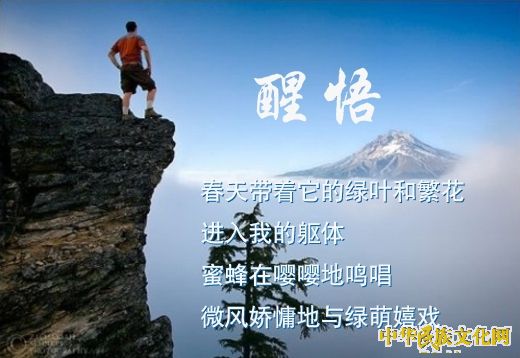 “醒悟” 作者/李忠宏 春天带着它的绿叶和繁花 进入我的躯体 蜜蜂在嘤嘤地鸣唱 微风娇慵地与绿萌嬉戏 一股甘美的清泉从内心深处涌出 我的双眼因思念而湿润 犹如露水沾湿的清晨 生命在我 ...