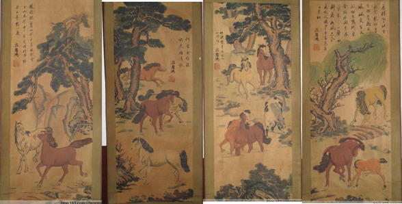 徐悲鸿创作的某一题材的作品,通常不会是一幅,如<九方皋>画了七幅,.还有各类马,狮,鸡,鹊等等都画有很多幅,但每一幅无论书法还是绘画都是有差异的.下面的早期四屏画马作品,目前发现共有两套及一单幅后补款四马图共九 ...