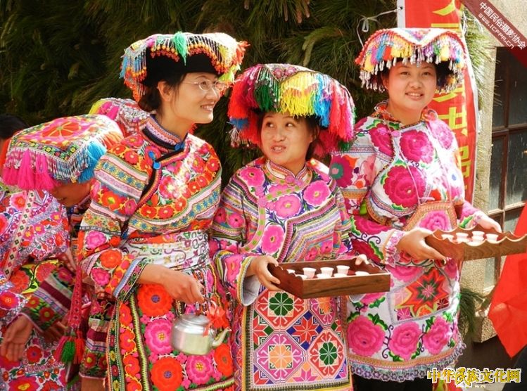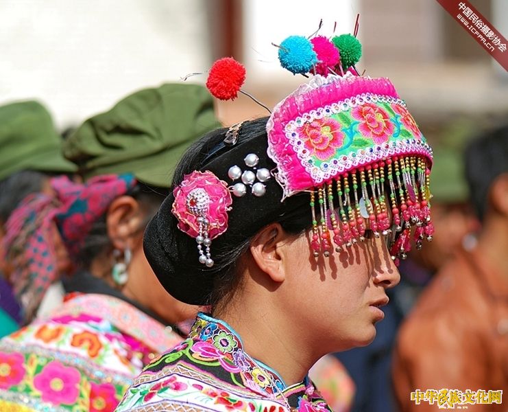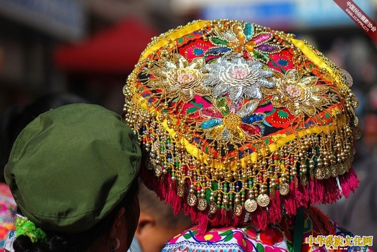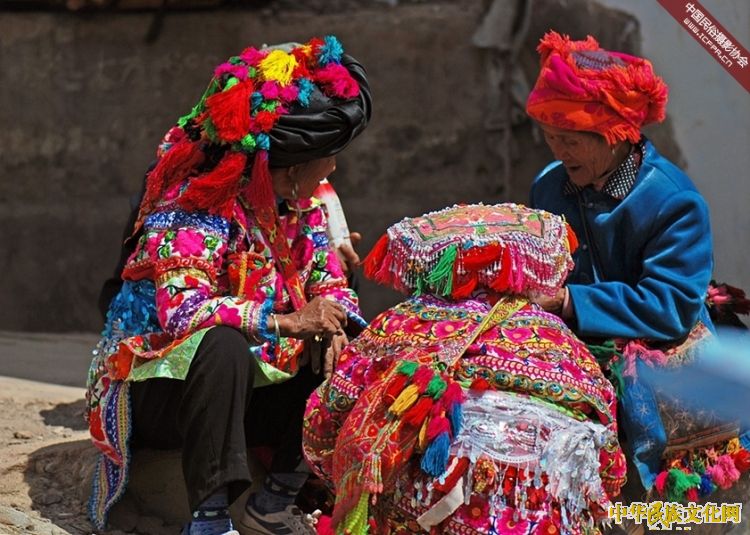 大姚彝族在服饰上有很明显的地域区别。比如头帕绣花四周垂穗是三台一带的,黑色包头镶六朵银泡是龙街、金碧一带的,而戴“鸡冠帽”的妇女则是桂花地区的……
