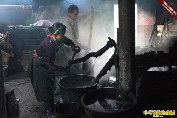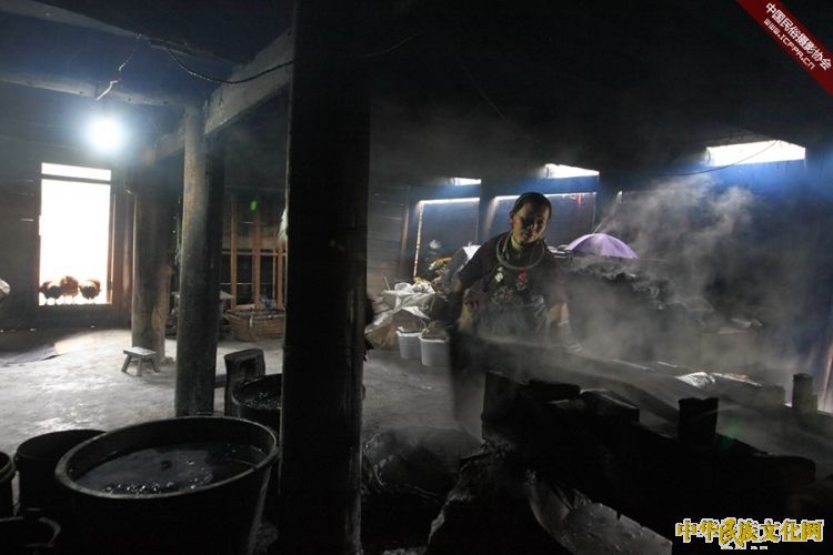 随着社会分工的细化,即使没有进入工业文明的苗族区域,也分布着大大小小的染布作坊,承担这一专业性比较高、劳动强度比较大的环节。