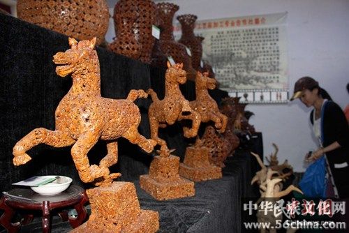 甘肃省陇南市徽县民间工匠以当地所产的野生山核桃为原料,利用其独特的纹理和自然镂空的效果以及坚硬的质地,经过洗选、切片、剔果仁、干燥、粘接、定型、抛光、细雕等二十多道工序,制作成虎、象、马等形状的工艺品,以及各式瓶、筒。由于整个加工过程系纯手工操作,产品完整保留了核桃的原始外形和自然花纹。殷春永摄 甘肃省陇南市徽县民间工匠以当地所产的野生山核桃为原料,利用其独特的纹理和自然镂空的效果以及坚硬的质地,经过洗选、切片、剔果仁、干燥、粘接、定型、抛光、细雕等二十多道工序,制作成虎、象、马等形状的工艺品,以及各式瓶、筒。由于整个加工过程系纯手工操作,产品完整保留了核桃的原始外形和自然花纹。殷春永摄