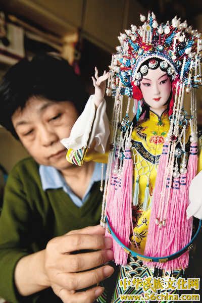 北京绢人是传统的民族手工艺品,有一千多年的历史。它选用上等的丝、绸、绢、纱等原料,经过雕塑、彩绘、服装、头饰和道具等十道工艺的精心手工操作而成。北京民间文艺家协会会员、北京市民间工艺美术大师齐聪颖寓绢人以生命,执著地传承着这一传统技艺。