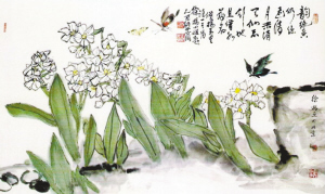 另一位是大家知道的青年画家徐杨,她曾就读于法国巴黎国立美术学院、法国巴黎艺术之都创作学院、法国大茅舍屋画院。徐杨在欧洲8年的学习生涯中,以油画为主,兼及平面设计。在此期间,学校每逢放假,包括学生实习期间,她都回北京家中。一则在国内有条件重新捡起中国画,二则能到老一代的艺术家的家中当面求教,现场聆听。徐杨曾在2006年出版过一本《徐杨书画集》,就是当时的求教之作。当时出版的那本册子中的作品,虽是初画,但至今她仍然非常珍惜,因为在那些画上都有老一辈艺术家为其题的跋,如刘继瑛曾在她的作品《画雁来红》中题写到:“傍水依石老少年,今朝少年胜前贤,意气风发样彩笔,缤纷云霞落九天。”像这样的老先生还有很多,启功、萧淑芳、秦岭云、沈鹏、姚治华等,足见他们对徐杨的欣赏、鼓励。同时,这也是老一代的艺术家对徐杨绘画的喜爱,也是他们对后学的期盼,凝结着艺术之情、长辈之情。