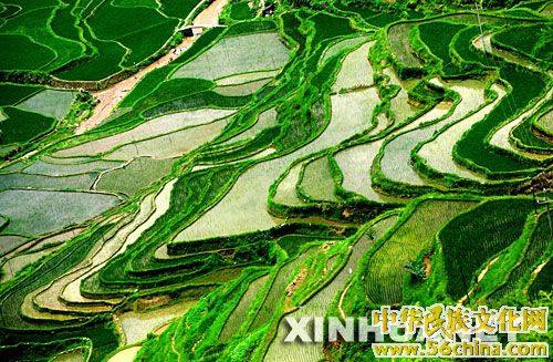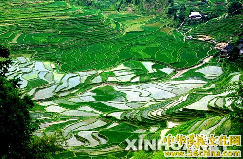 眼下,广西融水苗乡正值雨水充沛季节,梯田如画,美不胜收。 新华社发(龙涛 摄)