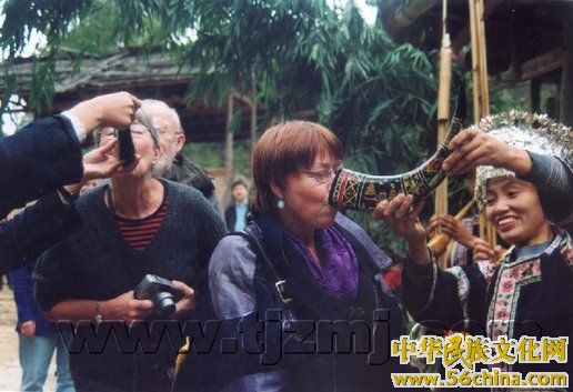 酿制的酒中,质量最高要数“重阳酒”为传统的窖酒。其制作很讲究,系用上好的糯米蒸熟作母子发酵成甜酒,另酿制度数最高的头道酒掺入甜酒中去泡,便成酒性纯正,酒色泽棕黄,状若稀释的蜂蜜,香味馥郁、青甜爽口。若窖在地里,时间越长,酒性更为纯正,苗族人民秉性豪爽,热情好客,酒在他们的心目中,是待亲朋的佳品和桥梁,每逢客至,常用自酿村醪,以飨宾朋。他们感到无酒不成礼仪,菜肴即使丰盛,无酒主人则感到怠慢了客,不成敬意。俗语说:“酒吃人情肉吃味”,重酒不重菜,只要有酒即使只有酸汤菜或一碟辣椒水都行。客人喝口寡酒下肚也是满意而归。酒席间,主人殷勤劝酒,当客人接过酒碗毫不犹豫地一饮而尽时,主人便喜笑颜开,热情地跟你攀谈,若客人不饮或饮之不力,主人会豁然不快,总之,来客必有酒待为贵,因而苗族人民创造发明了牛角酒、栏路酒、双脚走路酒、团圆酒、祝颂酒、交怀酒、送别酒等等独特的饮酒礼节。长辈、客人先饮是通常的礼节,交怀对饮,换盏添兴是一般规矩,劝酒时,常引吭高歌助兴,抒发彼此间的感情,或叙述族源、史实、歌唱丰收等等,有呼有应,有领有合,唱一首,对一曲,谁唱输谁就喝上一碗,彻夜不眠,通霄达旦。