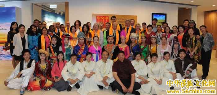 在中国文化中心,多彩中华团员为参加活动的 各国领事与嘉宾合影
